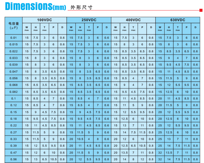 型 號(hào):CBB20 容量范圍:0.010μF~10μF |