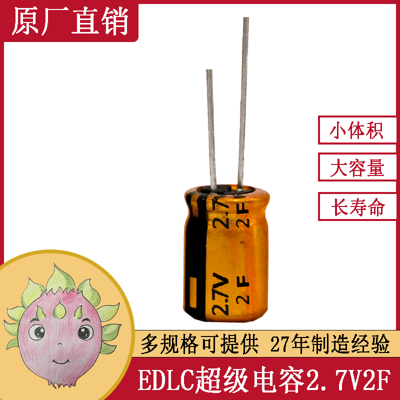 產(chǎn)品標(biāo)題:JMX2.7V 2F單體引線型超級法拉電容器系列8*16 適用于電動玩具