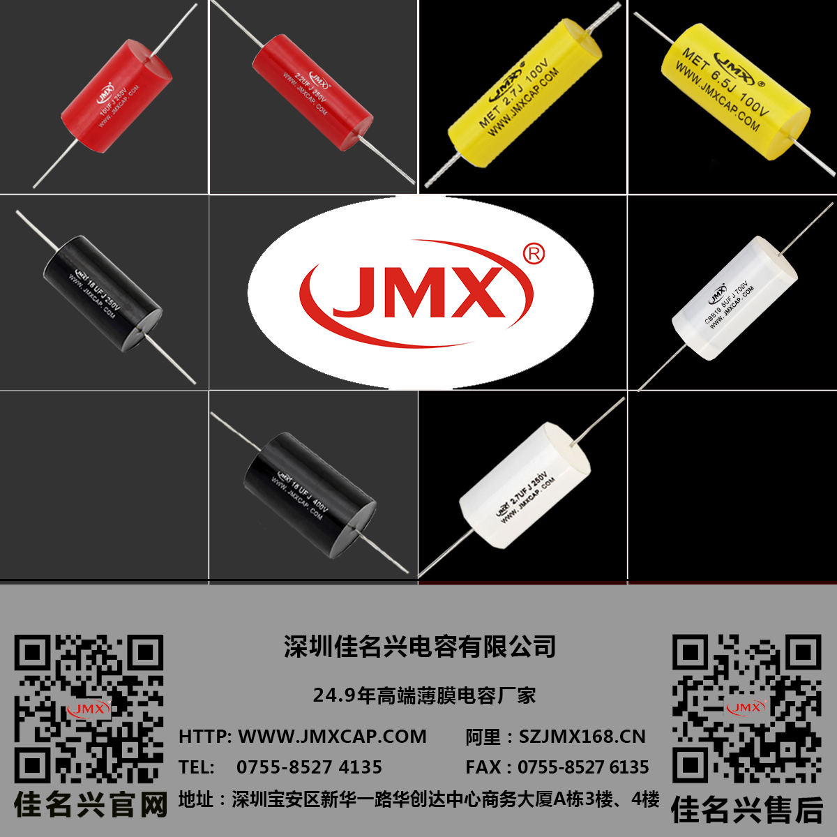 JMX牌電容已為上千家客戶提供優(yōu)質(zhì)高端電容近20年, JMX牌電容已經(jīng)成為中國最優(yōu)質(zhì)誠信的電容供應(yīng)商之一,熱誠歡迎各界朋友蒞臨佳名興電容器工廠參觀,指導(dǎo)和業(yè)務(wù)洽談