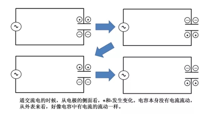 <電容阻斷直流電,僅可通交流電>電容不可通直流電,如果重復(fù)充電、放電,在電容中將會反復(fù)流動(dòng)充電電流和放電電流。這種現(xiàn)象可通過電容的外觀觀察電流是否流經(jīng)電容。