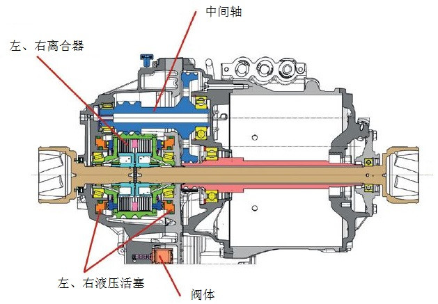 采用雙離合系統(tǒng)取代傳統(tǒng)差速器,可精確調(diào)節(jié)每個(gè)車輪的扭矩,實(shí)現(xiàn)左、右車輪扭矩矢量控制。實(shí)現(xiàn)扭矩限制,實(shí)現(xiàn)電子限滑差速鎖功能。斷開連接時(shí)提高系統(tǒng)效率。