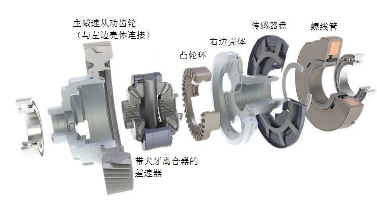 吉?jiǎng)P恩變速器,集成電子斷開差速器。圖3為其剖視圖。圖5為吉?jiǎng)P恩電子斷開差速器爆炸圖。應(yīng)用在沃爾沃XC90 T8混合動(dòng)力汽車上。