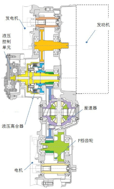 實(shí)現(xiàn)純電動(dòng)、串聯(lián)混合動(dòng)力、并聯(lián)混合動(dòng)力、混聯(lián)混合動(dòng)力等模式之間切換,提高了整車性能和效率。