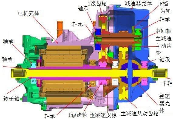 雪佛蘭(Chevrolet)Bolt變速器,輸入軸與輸出軸同軸。圖4為雪佛蘭Bolt同軸單擋變速器剖視圖。應(yīng)用在雪佛蘭Bolt純電動(dòng)汽車上。