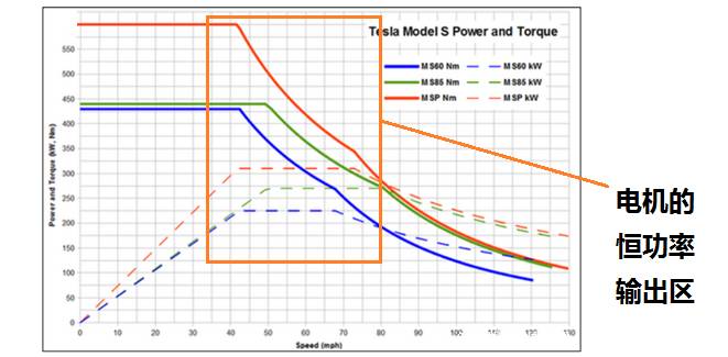 電動(dòng)汽車的驅(qū)動(dòng)動(dòng)力源是電機(jī),而電機(jī)和發(fā)動(dòng)機(jī)相比,它有一個(gè)不同的地方,就是在恒功率狀態(tài)下,轉(zhuǎn)速越慢,轉(zhuǎn)矩越大;轉(zhuǎn)速越高,轉(zhuǎn)矩越小。所以當(dāng)電動(dòng)汽車給驅(qū)動(dòng)電機(jī)的供電是恒定時(shí),即恒功率輸入時(shí),電機(jī)可以自動(dòng)輸出電動(dòng)汽車克服阻力所需要的轉(zhuǎn)矩,及可獲取該阻力下的最高轉(zhuǎn)速。